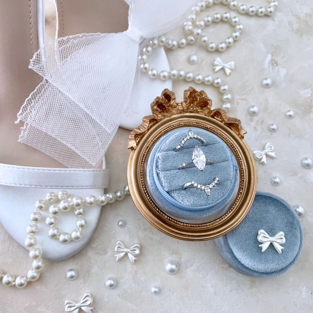 The Bright Gold finish & ornate scrolling detailing will elevate your next flat lay. Style with our triple slot ring box or ribbon for the perfect flat lay.